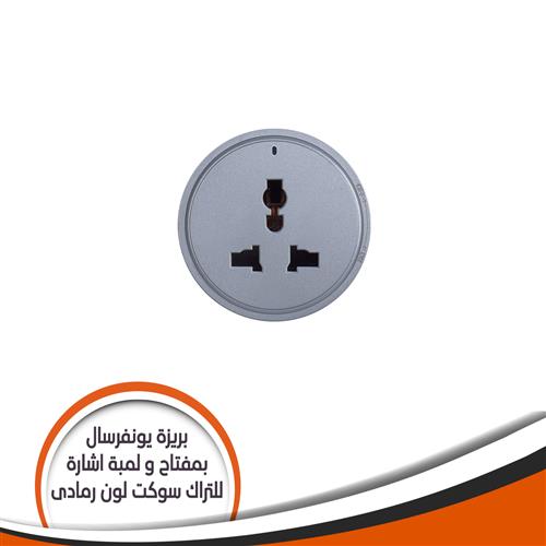 برايز - بريزة يونيفرسال بمفتاح ولمبة اشارة للتراك سوكت رمادى DS/16/HZ/9MDN8G